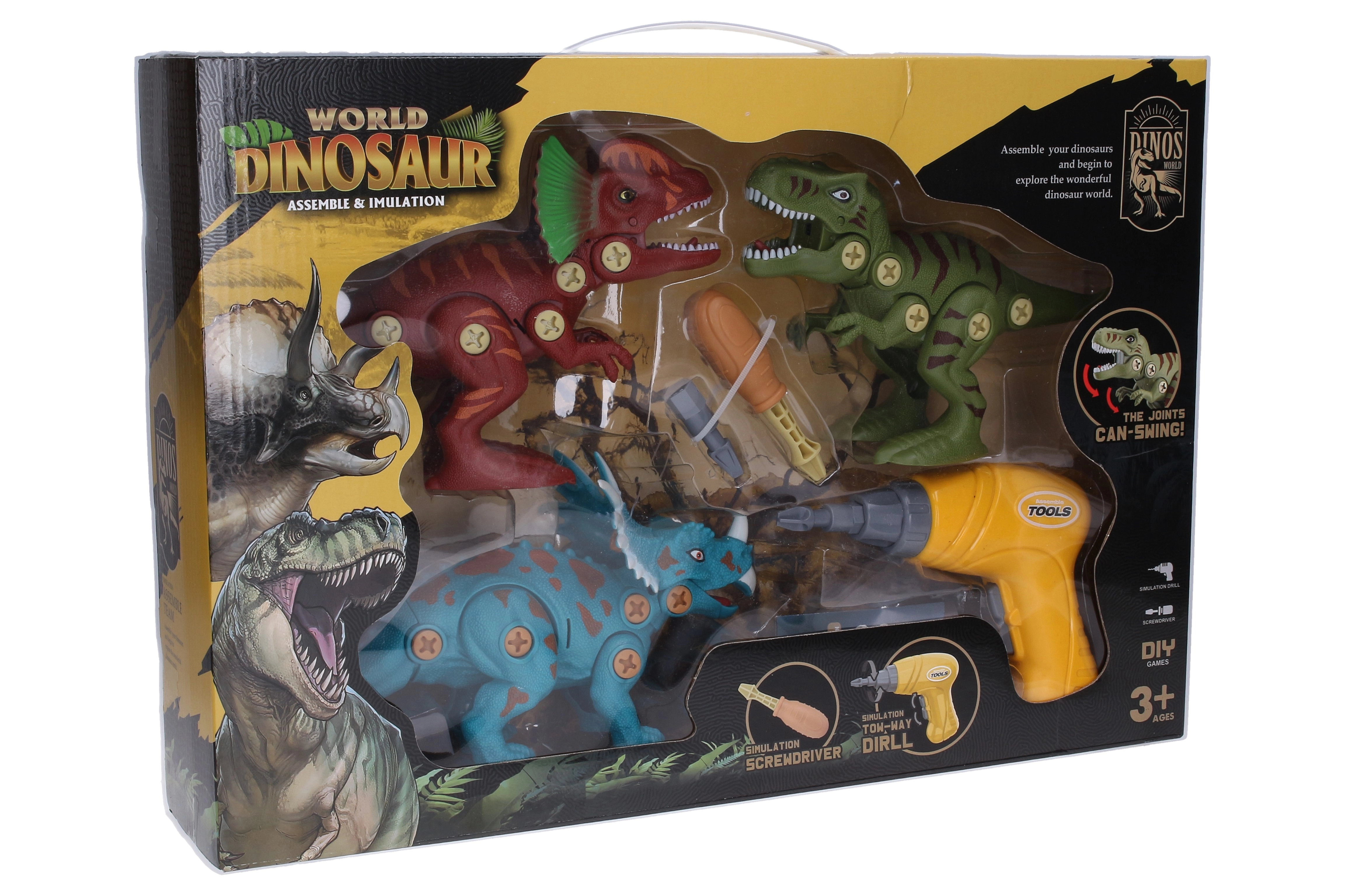- Confezione completa: 3 dinosauri, cacciavite elettrico e manuale, istruzioni