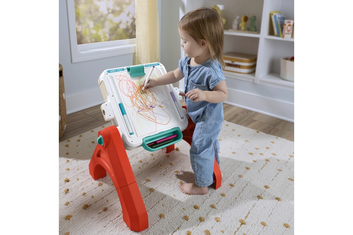 Scoprite il versatile tavolino da gioco 4 in 1, che cresce con il bambino dalla seduta alla posizione eretta fino alla creazione autonoma. Il pannello interattivo insegna numeri, colori e forme, offre oltre 125 suoni, frasi e canzoni e il sistema Smart Stages per adattarsi all’età. Grazie alle gambe pieghevoli e alla modalità lavagna verticale con clip per la carta e vano porta-accessori, sostiene le abilità musicali, sensoriali e artistiche dei bambini dai 6 mesi in su.