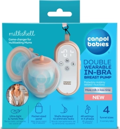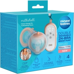 Canpol babies MilkShell è un moderno tiralatte doppio wireless da indossare nel reggiseno, progettato per un’estrazione comoda, discreta ed efficiente. Le leggerissime coppe di raccolta (180 ml ciascuna) con imbuto morbido si adattano perfettamente al reggiseno, così puoi estrarre a mani libere a casa e in viaggio. L’unità di controllo con pulsanti chiari può essere portata al collo grazie al cordino: tutto è a portata di mano e pronto all’uso.