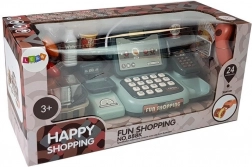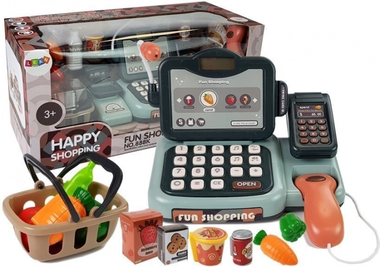 Nella confezione trovate tutto il necessario: cassa con bilancia e lettore di carte, scanner manuale, cestino, alimenti giocattolo (biscotti, succo, acqua, gelato, cola, verdura), carta di pagamento, banconote e 6 monete di plastica. Il gioco è così estremamente realistico e sviluppa fantasia e motricità fine.