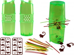 Costruisci la torre, infila i bastoncini colorati e appendi le simpatiche scimmiette. I giocatori estraggono a turno i bastoncini cercando di far cadere il minor numero possibile di scimmiette. Regole semplici, partite veloci e tante risate: ideale per serate in famiglia e feste per bambini.