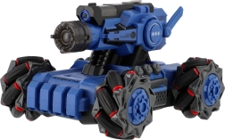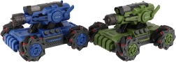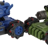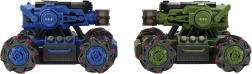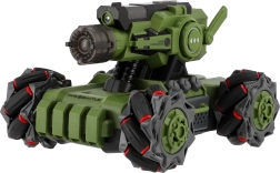 Il set di due moderni carri armati RC è ideale per battaglie domestiche. La struttura robusta, la trazione integrale e le speciali ruote multidirezionali consentono cambi di direzione fulminei, superamento degli ostacoli e spettacolare drift laterale. Gli effetti luminosi e di fumo realistici portano il gioco a un livello superiore.