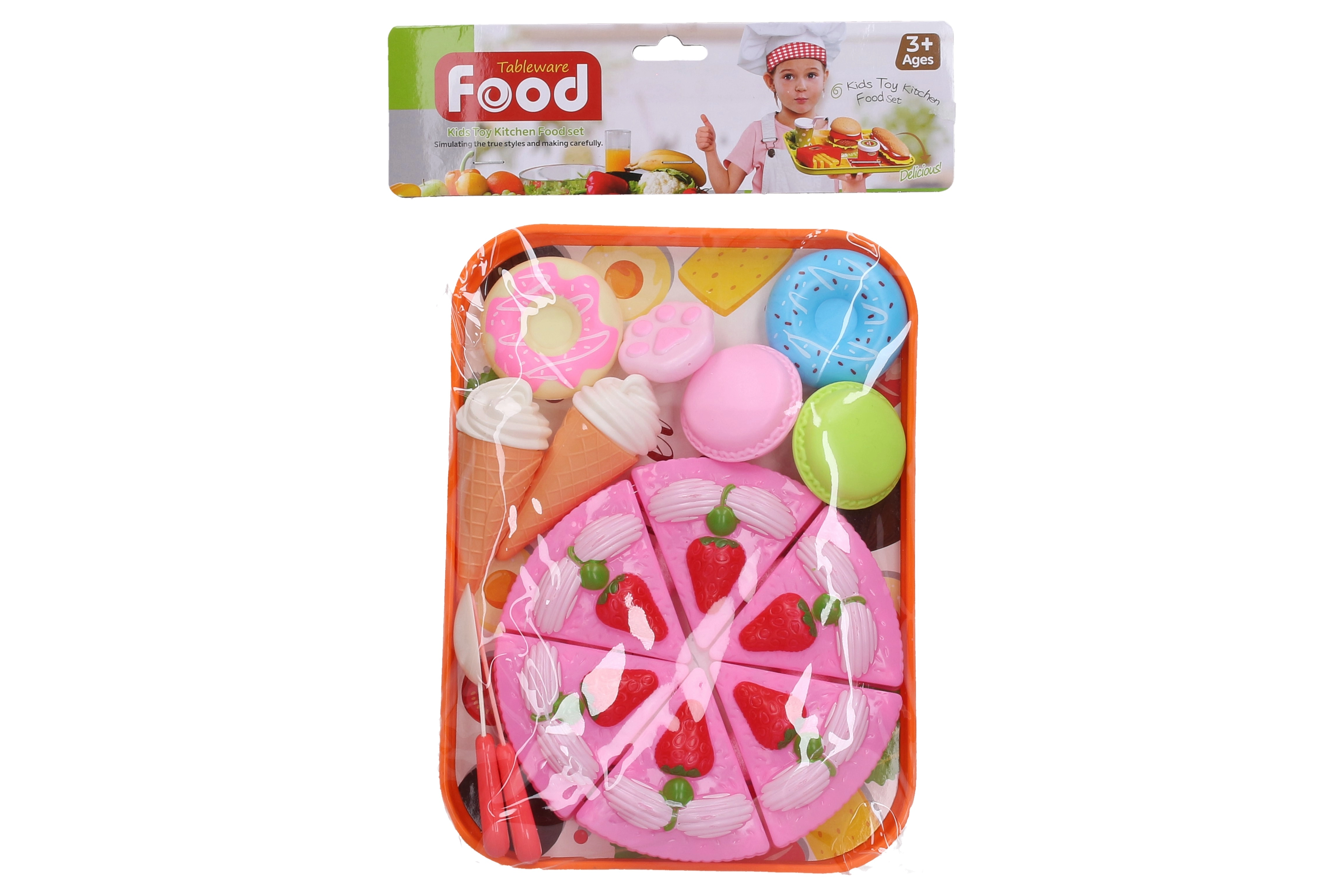 - Dotazione completa: vassoio, torta, posate e “cibo” per un gioco realistico.