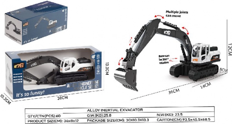 Questo escavatore dettagliato combina elementi in metallo con plastica di qualità per una lunga durata e un gioco realistico. La cabina ruota di 360°, il braccio e la benna in metallo sono completamente mobili, così i bambini possono facilmente raccogliere e spostare i materiali.