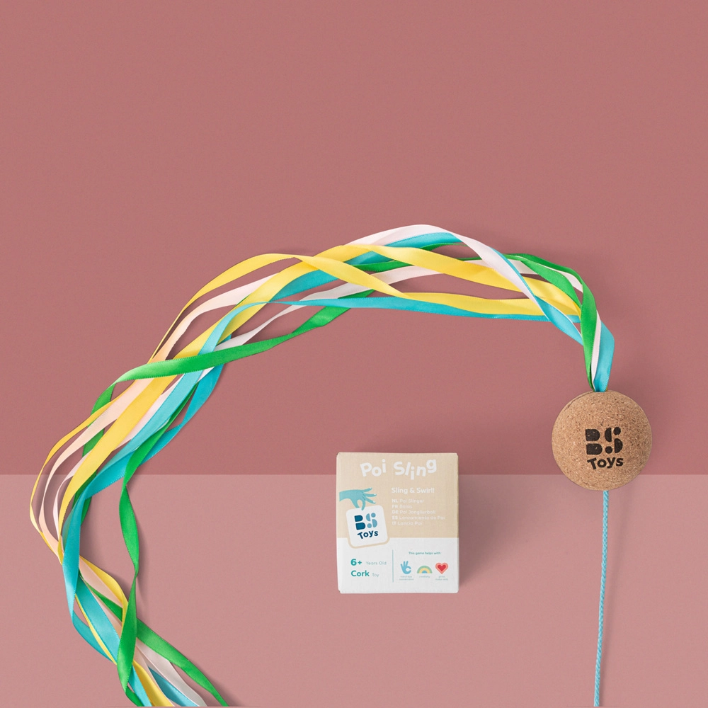 Scopri un gioco divertente per bambini dai 4 anni che sviluppa la coordinazione occhio–mano, la motricità grossa e la creatività. Il poi sling è facile da controllare grazie al peso in sughero e ai nastri lunghi e colorati, ed è ideale per i principianti.