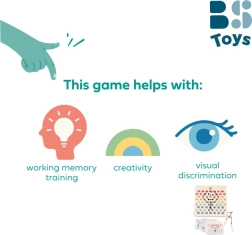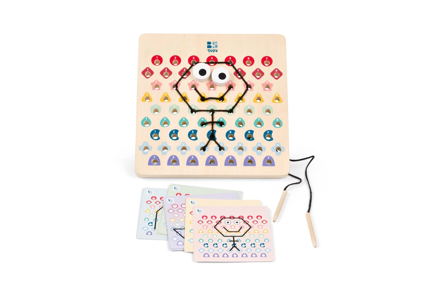 Scoprite un divertente set didattico per piccoli creatori: tavoletta di legno perforata, cordini e carte modello grazie ai quali i bambini realizzano bei motivi seguendo codici colore. Il gioco sviluppa motricità fine, pensiero logico, immaginazione visiva e creatività – da compiti semplici fino a codificazioni di motivi più impegnative.