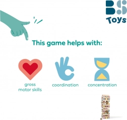 Divertente gioco di abilità in stile Jenga per 2–10 giocatori dai 4 anni, che unisce suspense e apprendimento dei numeri. I giocatori lanciano il dado e rimuovono i blocchi in base al risultato: un blocco, oppure due con somma corrispondente al tiro. L’obiettivo è mantenere la torre in equilibrio sviluppando competenze numeriche, motricità, coordinazione occhio–mano, concentrazione e pazienza.