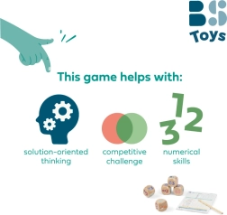 I giocatori allenano il calcolo, il riconoscimento di schemi e il processo decisionale nella scelta delle combinazioni migliori. I solidi dadi in legno e il pratico blocchetto con matita assicurano che il gioco sia subito pronto all’uso – a casa, in campagna o in viaggio.