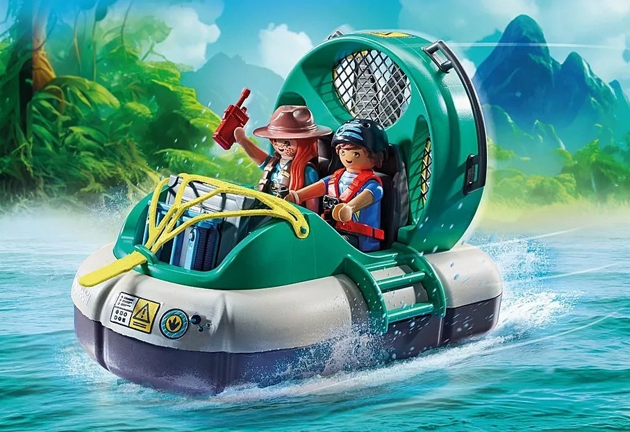 L’hovercraft ospita due personaggi PLAYMOBIL e consente esplorazioni acquatiche realistiche e rapidi spostamenti al seguito dei dinosauri.