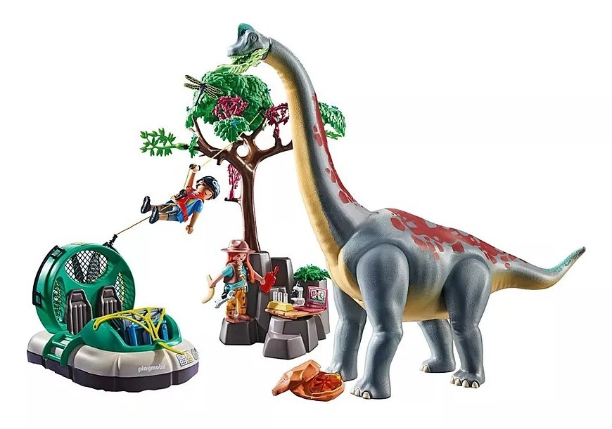 Esplora il mondo dei dinosauri con un set dettagliato che combina ricerca d’azione, esplorazione della natura e divertimento in acqua. L’hovercraft ospita due personaggi ed è ideale per spedizioni nelle zone umide, mentre la teleferica permette rapidi spostamenti tra le chiome degli alberi, da cui osservare in sicurezza il Brachiosauro mentre mangia.