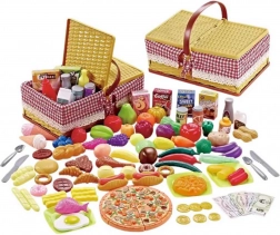 - cestino da picnic pieghevole, pizza a spicchi, frutta, verdura, prodotti a base di carne, dessert, bevande, posate (coltelli, forchette, cucchiaini), piatti, banconote e monete