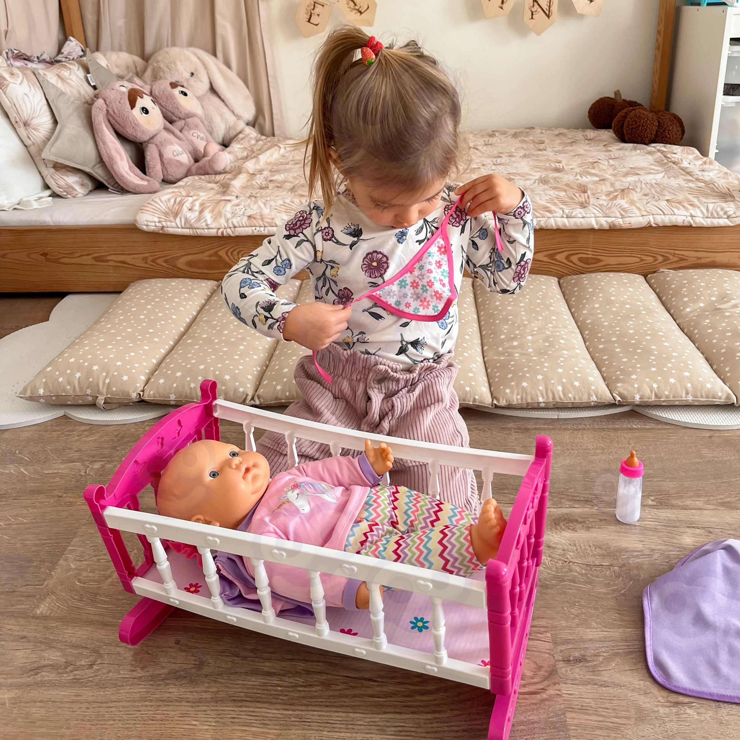 - Culla a dondolo, gioco di ruolo, allattamento della bambola