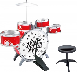 Il set include in totale 7 elementi ed è ideale per suonare a casa e per i primi “concerti”. I genitori apprezzeranno il montaggio rapido e i materiali resistenti, mentre i bambini ameranno l’aspetto accattivante con il tamburo centrale e il piatto.