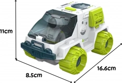 Questo futuristico rover spaziale colpisce per la carrozzeria bianca con elementi verdi a contrasto e dettagli realistici ispirati ai veicoli da esplorazione. La cabina trasparente e apribile permette di sistemare comodamente l’astronauta alla guida, mentre il radar interattivo si estende automaticamente premendo il pulsante sul tetto e si ritrae premendo il paraurti anteriore.