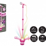 Il microfono karaoke rosa con supporto trasforma ogni cameretta in un palcoscenico. Offre 12 canzoni integrate, effetti luminosi colorati e la possibilità di collegare un MP3 o uno smartphone. Grazie all'altezza regolabile 40–80 cm cresce con il bambino ed è ideale per piccoli cantanti dai 3 anni in su.