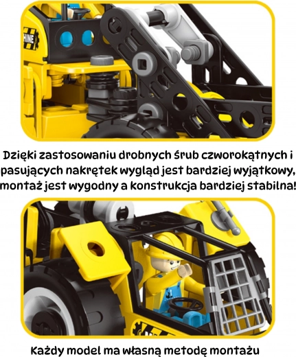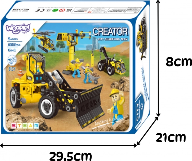 Il set WOOPIE Macchine edili STEAM 6in1 offre ai bambini un’esperienza di costruzione autentica. Il design industriale giallo‑nero e i dettagli realistici stimolano l’immaginazione, mentre i pezzi robusti garantiscono una lunga durata. Da un unico kit è possibile assemblare diversi tipi di macchine da cantiere – da poderose escavatrici e gru fino ad altri mezzi da lavoro.