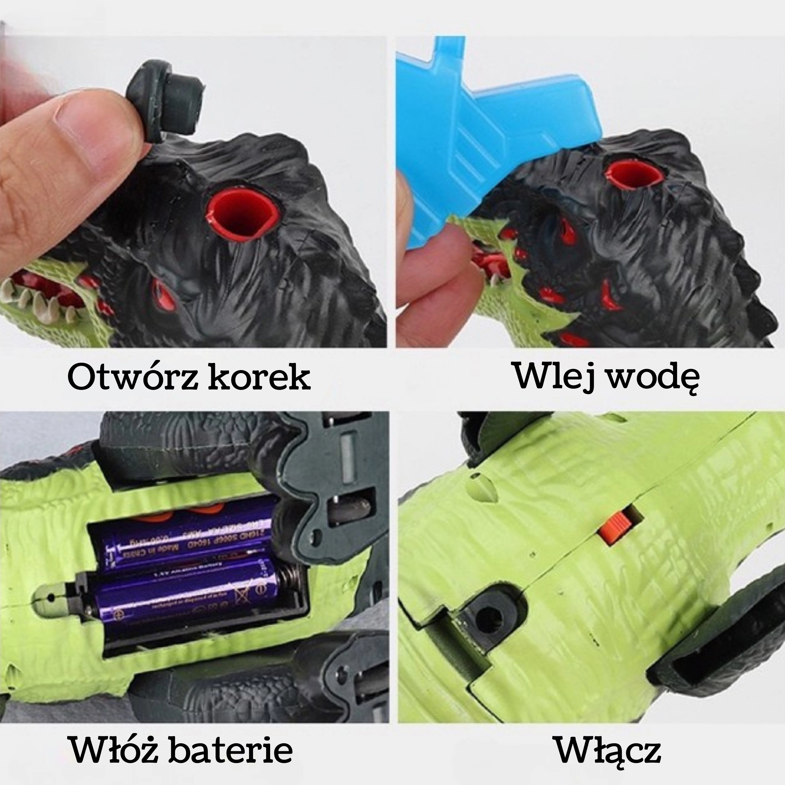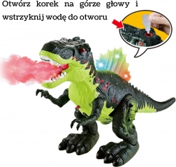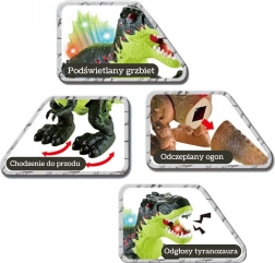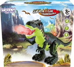 Lo spettacolare dinosauro interattivo Tyrannosaurus Rex del marchio Woopie offre ai bambini un'esperienza preistorica unica. Sa camminare in avanti, ha una mandibola mobile, una schiena retroilluminata a colori e emette autentici ruggiti. Inoltre, diffonde scenograficamente una nebbia che imita una fiamma ardente.