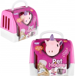 Delizioso set per i piccoli amanti degli animali: casetta portatile con morbido unicorno di peluche rosa e spazzola per la cura. Il bambino può portare il suo cucciolo ovunque – all’asilo, a passeggio e in viaggio. Sportellino trasparente a forma di cuore per sbirciare all’interno, comoda maniglia per un facile trasporto e morbissimo unicorno di peluche che invita alle coccole e al gioco di fantasia. Il giocattolo sviluppa empatia, responsabilità e immaginazione nel gioco quotidiano.