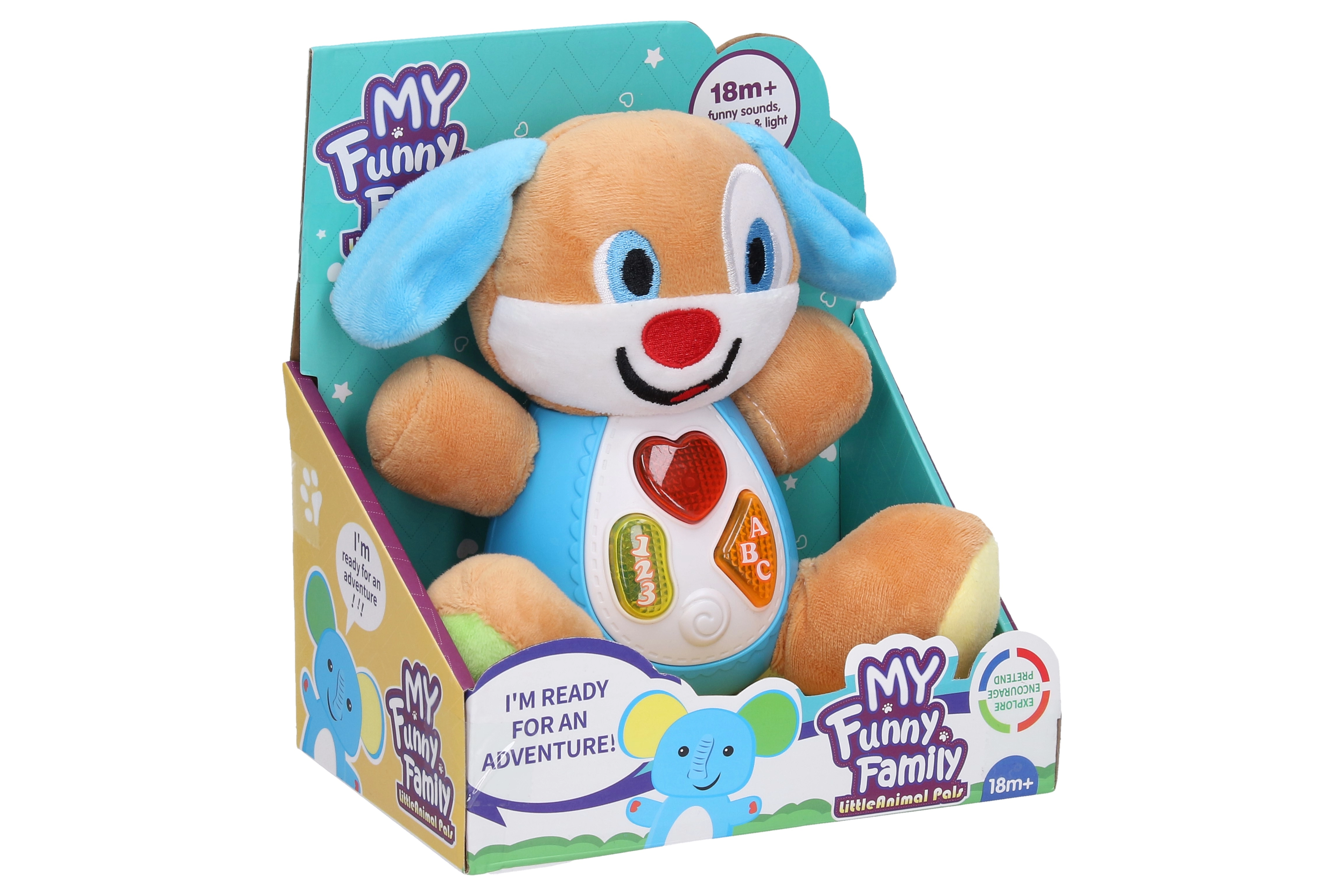 Il cagnolino interattivo alto circa 22 cm farà felici tutti i bambini. Il morbido corpo in peluche è piacevole al tatto, mentre il pancino in plastica con pulsanti offre divertimento e stimoli per lo sviluppo dell’udito, della vista e della motricità fine. Il controllo semplice e il chiaro interruttore ON/OFF laterale rendono il giocattolo pratico per genitori e bambini.