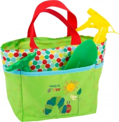Colorato set da giardinaggio per i piccoli aiutanti in giardino. La pratica borsetta con tasche contiene attrezzi in plastica per bambini – paletta, rastrello e spruzzatore. Struttura leggera e sicura per bambini dai 3 anni che favorisce il gioco, la motricità e il rapporto con la natura.