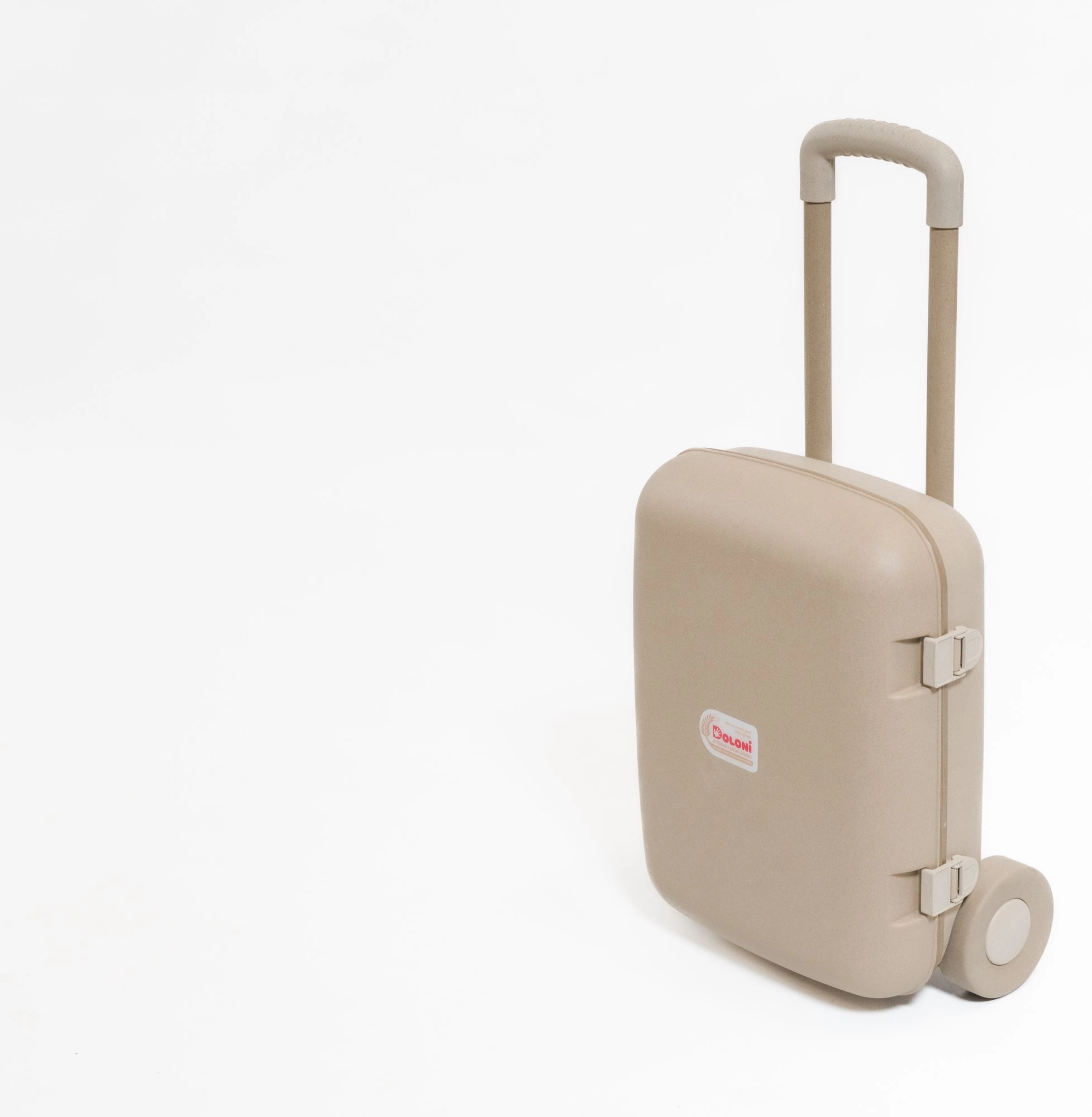 La valigia da viaggio per bambini DOLONI EKO in colore beige è la compagna ideale per vacanze, gite e weekend dai nonni. Realizzata in materiale ecologico a base di paglia di grano, unisce rispetto per l’ambiente, resistenza e facilità di manutenzione. Grazie alle ruote e al manico telescopico, è facile da manovrare e i bambini possono trascinarla da soli.