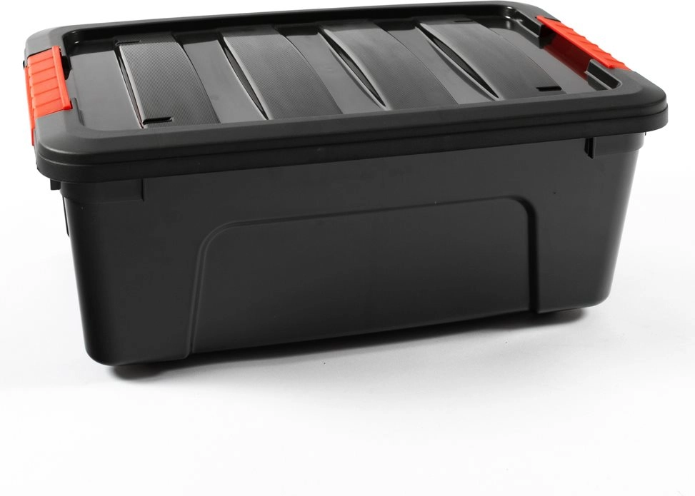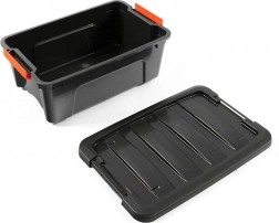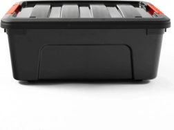Il coperchio robusto protegge il contenuto dalla polvere e consente di impilare stabilmente più box uno sopra l'altro.