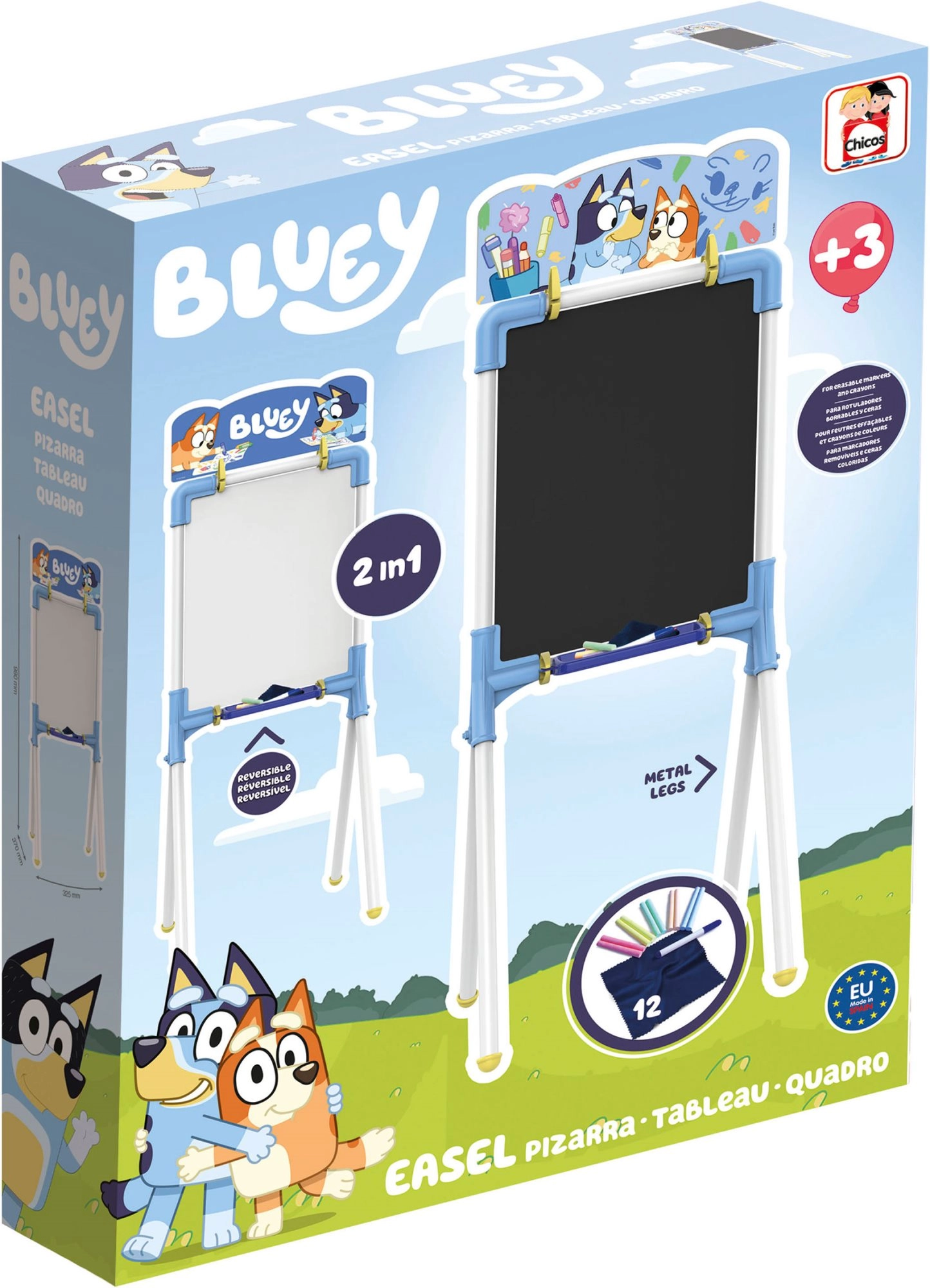 Scopri uno strumento divertente e pratico per i piccoli artisti: la lavagna bifacciale BLUEY 2-in-1. Un lato è bianco cancellabile per pennarelli, l’altro è classico nero per gessetti. Grazie alla struttura stabile, alla mensolina portaoggetti e al ricco set di accessori, è ideale per disegnare, scrivere e imparare.