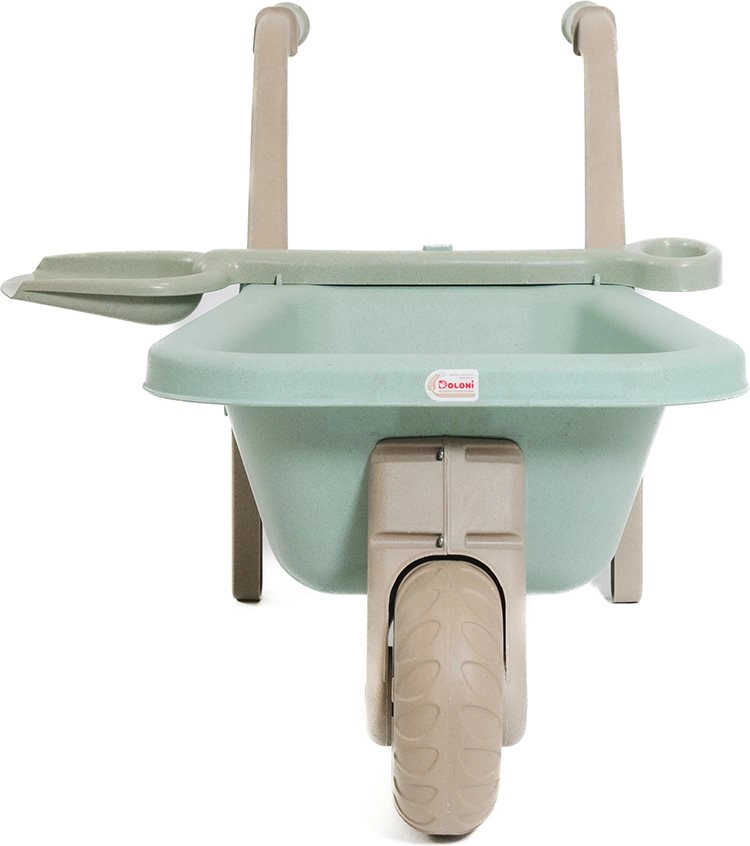 La carriola per bambini DOLONI con paletta farà felici i piccoli giardinieri e gli amanti della sabbiera. Grazie alla vasca profonda, alla grande ruota anteriore e alle solide gambe di appoggio, il trasporto di sabbia, terra e piccoli tesori è facile e divertente. Il materiale con aggiunta di paglia di grano offre resistenza e una scelta più ecologica per la tua casa.
