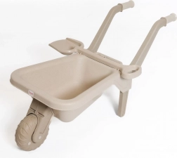 La vasca ampia contiene sabbia, terra e piccoli ramoscelli, mentre i robusti piedini garantiscono stabilità durante il carico. Le maniglie ergonomiche con impugnature sono adatte alle mani dei bambini e la pala alloggiata sulla parte superiore è sempre a portata di mano.