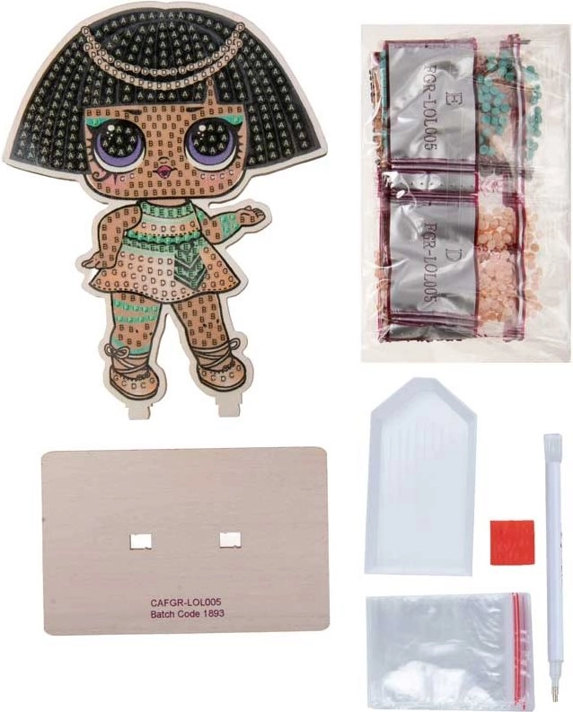 La pittura con diamanti è un ottimo modo per svuotare la mente e allo stesso tempo realizzare una decorazione originale con il tema LOL Surprise: Faraona. Il procedimento è intuitivo: si prelevano le singole pietrine con la cera sulla penna e si applicano sulle aree indicate. Il risultato è un’immagine scenografica e luccicante che potrai esporre facilmente grazie al supporto.