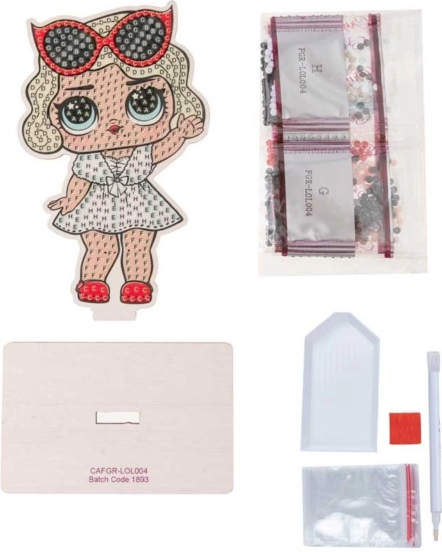 Il set è completo: nel kit trovi tutto il necessario. La tavoletta in legno con motivo prestampato semplifica il lavoro e il robusto supporto ti permette di esporre con orgoglio l’opera finita. Un’ottima idea per il craft rilassante e come regalo per i fan di LOL Surprise.