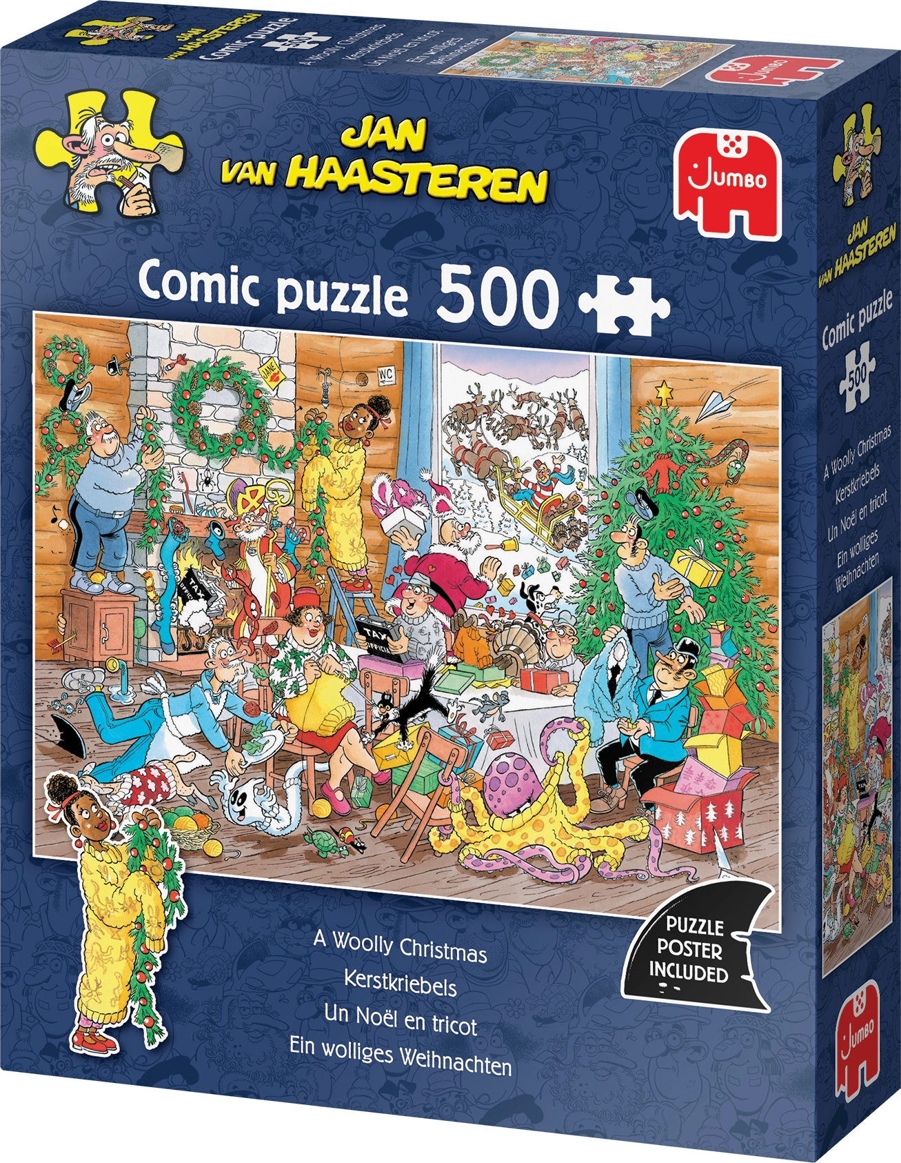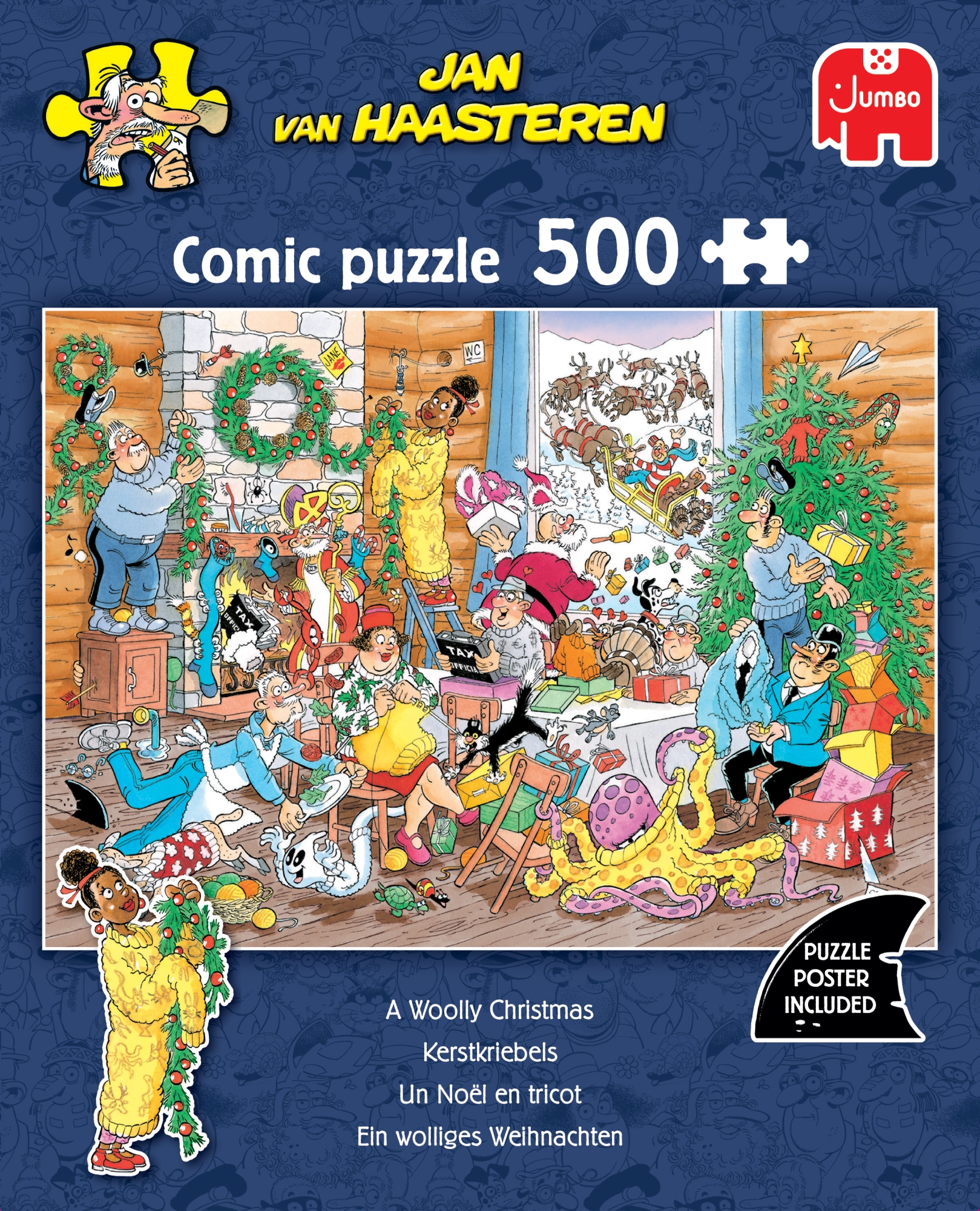 Scopri un mondo pieno di umorismo e dettagli con i puzzle JUMBO del famoso illustratore JAN VAN HAASTEREN. Il motivo “Feste di Natale in lana” porta un’atmosfera festiva, un allegro caos e una moltitudine di personaggi e scenette che ti divertiranno a ogni composizione. Grazie alla lavorazione di qualità e ai tagli precisi, i pezzi si incastrano perfettamente.