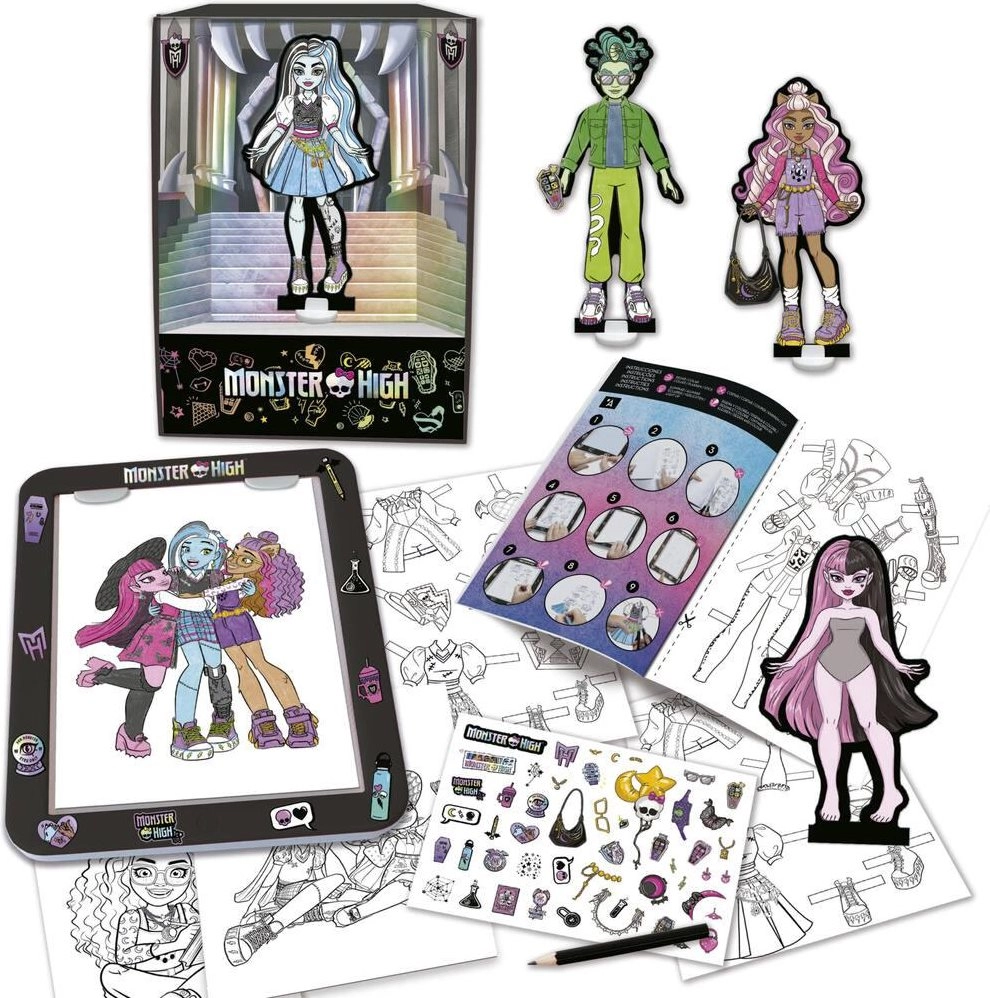 Scopri un divertente set creativo con cui i bambini possono progettare outfit di moda per le figurine MONSTER HIGH grazie a una tavoletta con base retroilluminata. Il set sviluppa fantasia e creatività, favorisce la motricità fine e allena concentrazione e pazienza. Include tutto il necessario per progettare, ricalcare, colorare e decorare – e la scatola può trasformarsi in una passerella per la sfilata finale.