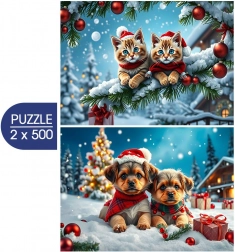 Questo set porta il doppio della gioia: due immagini separate con una magica atmosfera natalizia, protagonisti teneri gattini e cuccioli. Con 500 pezzi per ciascuna immagine, il montaggio è una sfida piacevole per bambini e adulti ed è perfetto come regalo delle feste.