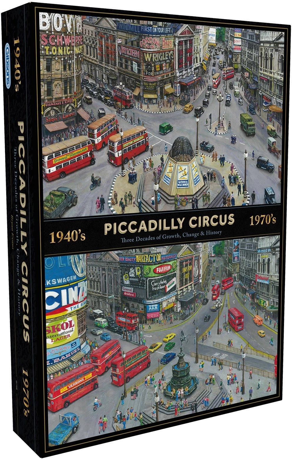 Ami Londra e le illustrazioni ricche di dettagli? Questo puzzle GIBSONS con tema Piccadilly Circus ti guiderà attraverso la sua vivace atmosfera nel corso dei decenni. Grazie al taglio preciso e ai colori intensi, i pezzi si incastrano facilmente e l’immagine finale risulta straordinariamente vivida.