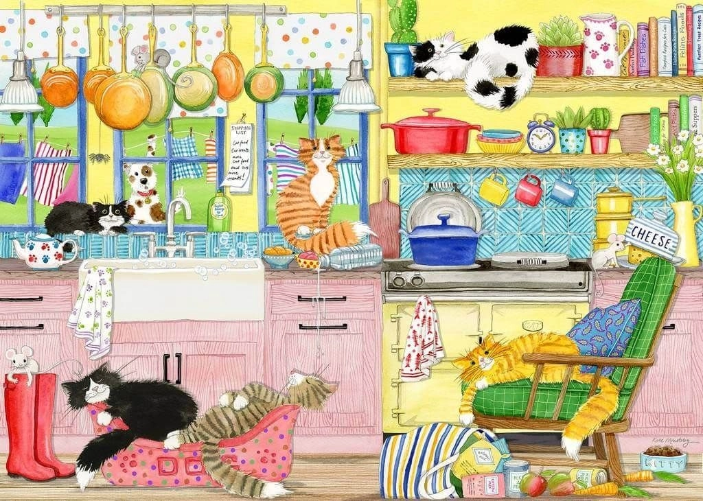 Scopri il mondo giocoso dei gatti con la collezione Cat-astrofe felina del marchio GIBSONS. Il set include quattro puzzle separati, ciascuno da 500 pezzi, con le stesse dimensioni finali. Grazie alle immagini guida incluse, il montaggio sarà piacevole sia per principianti sia per appassionati esperti.