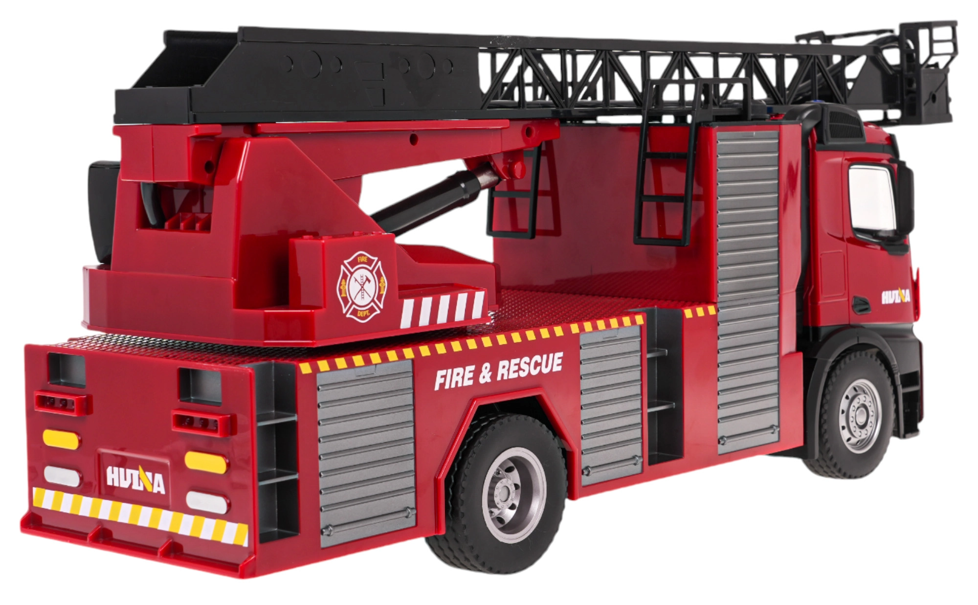 Questo camion dei pompieri radiocomandato, ricco di dettagli, è realizzato in plastica di qualità e dispone di ruote in gomma con battistrada per una migliore trazione. Grazie alla frequenza 2,4 GHz, il controllo è fluido e senza interferenze, così potrai manovrare facilmente in avanti, indietro e lateralmente. La piattaforma con braccio ruota direttamente dal radiocomando e il braccio può essere alzato e abbassato.