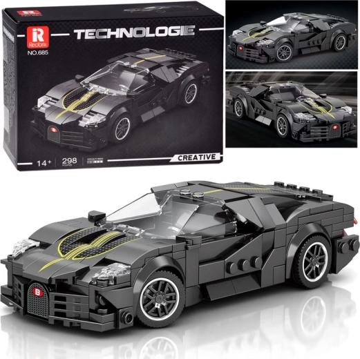 Kit di costruzione tecnico – hypercar di lusso nera, auto sportiva 298 pezzi