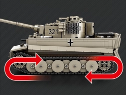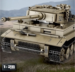 Scafo, torretta e carrello dettagliati riproducono fedelmente l'aspetto del celebre Tiger I. L'imponente scala 1:28 risalta in qualsiasi vetrina.