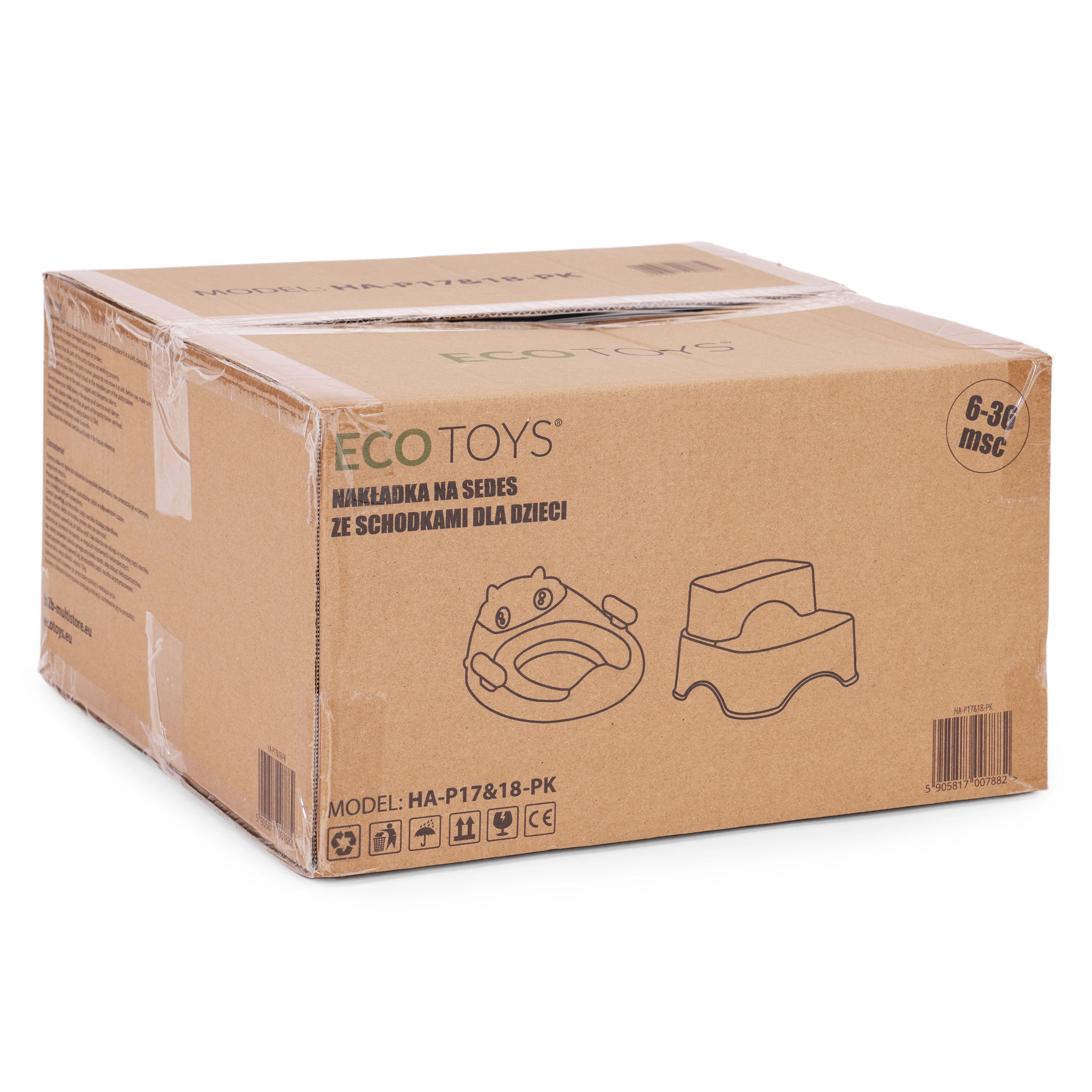 Offri a tuo figlio sicurezza e comfort nel passaggio dal pannolino al WC. Il sedile WC rosa ECOTOYS con morbido “cuscinetto” si adatta in modo stabile al water standard grazie alla forma ergonomica e alle maniglie laterali, riduce l’apertura e fornisce un sostegno sicuro. La scaletta a due livelli con finitura antiscivolo aiuta i bambini a salire facilmente e in sicurezza.