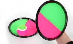 La superficie in velcro nei colori verde neon e rosa tiene saldamente la pallina, così si divertono anche i più piccoli e i principianti.