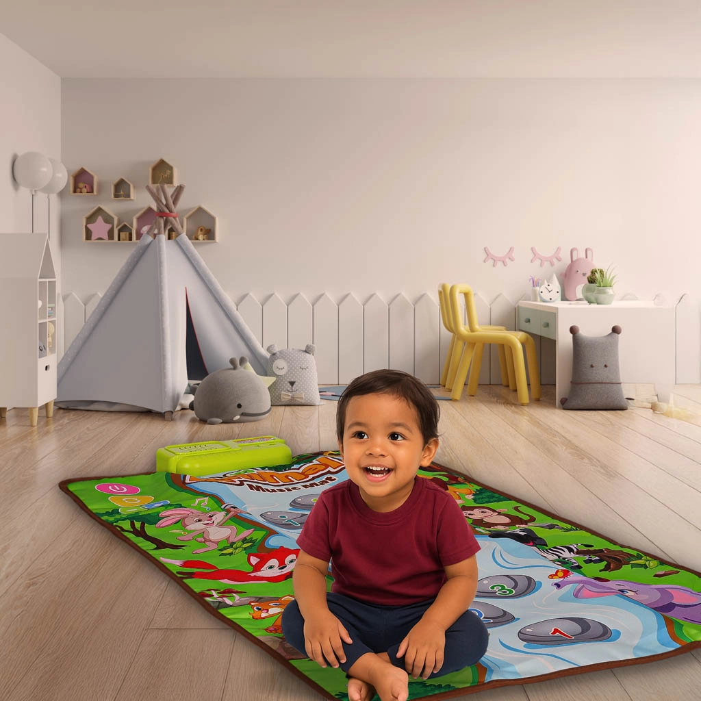 Scoprite il divertente e sicuro tappetino musicale interattivo con animaletti, che unisce apprendimento, movimento e musica in uno. Il tappetino reagisce al tocco, riproduce melodie, suoni di animali e aiuta a sviluppare udito, ritmo, coordinazione e creatività dei bambini dai 18 mesi in su.