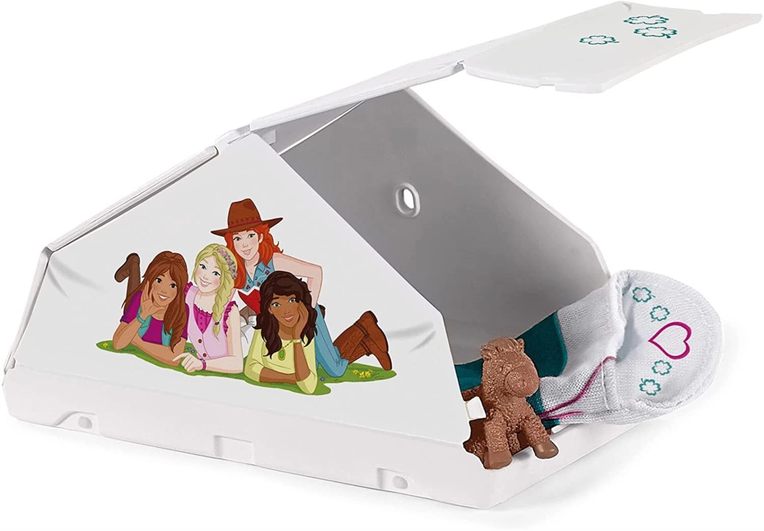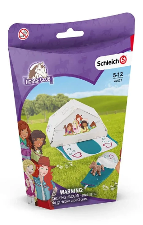Scopri il mondo dei cavalli e delle avventure con il set da campeggio che arricchisce la tua scuderia con nuove esperienze. I bambini montano la tenda in un attimo, preparano sacco a pelo e coperta e possono creare il proprio accampamento per le figurine della collezione Horse Club. Gli accessori sono progettati per stimolare la fantasia, il gioco di ruolo e la motricità fine.