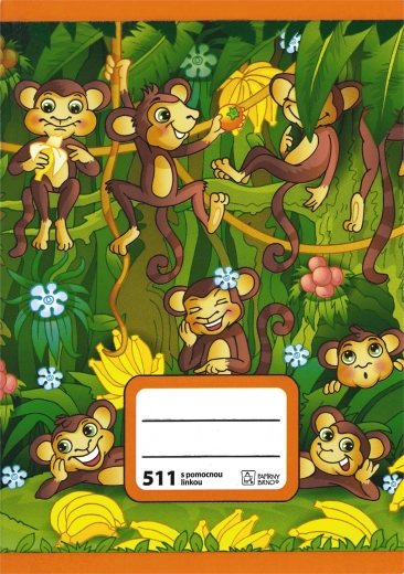Pratico quaderno scolastico formato A5 con allegro motivo di scimmiette, ideale per i primi esercizi di scrittura. Contiene 10 fogli a righe con larghezza riga 20 mm e 2 righe ausiliarie su ogni riga per facilitare l’apprendimento della grafia.