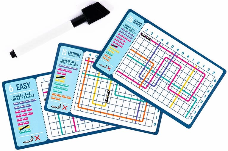 • 40 carte riutilizzabili con una varietà di rompicapi logici