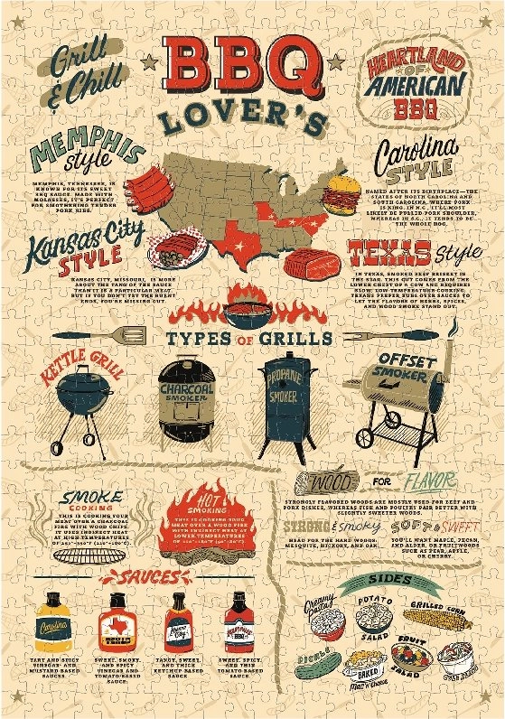 Scopri un puzzle divertente con tema BBQ che farà felice ogni appassionato di grigliate. Con 500 pezzi, offre una sfida piacevole per singoli e famiglie e, una volta completato, diventa una bellissima decorazione. La stampa di qualità e i tagli precisi garantiscono un assemblaggio fluido e un risultato impeccabile.