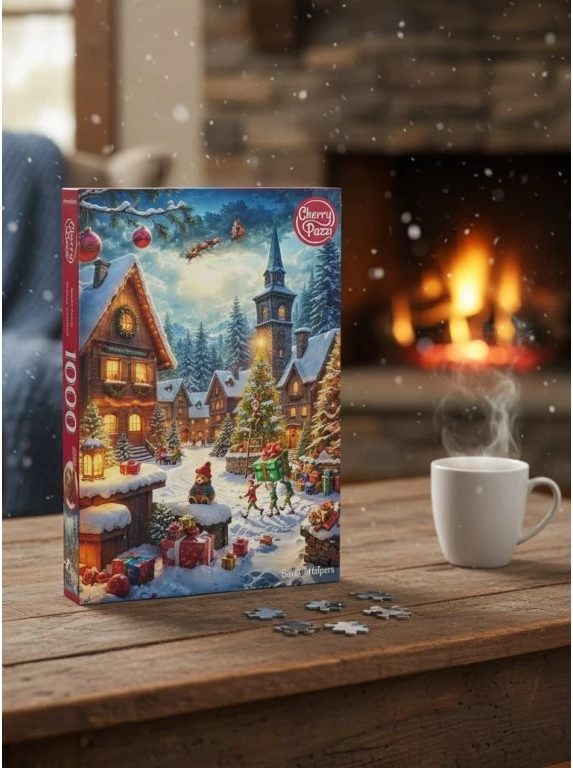 Goditi ore di divertimento con il puzzle di qualità Cherry Pazzi con il motivo degli aiutanti di Babbo Natale. Contiene 1000 pezzi e, una volta completato, misura circa 50 × 70 cm – ideale per gli amanti dell’atmosfera natalizia e del relax con i puzzle.