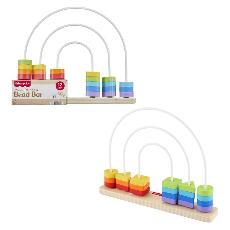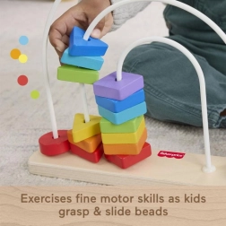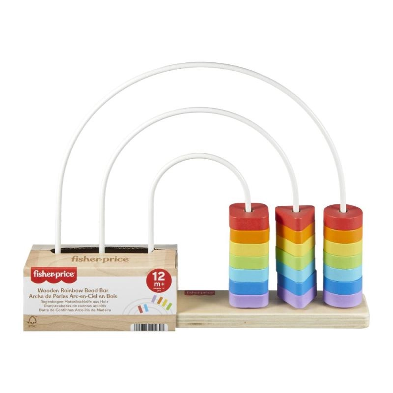 Scopri l’apprendimento divertente con il labirinto di perline in legno Arcobaleno di FISHER‑PRICE. I bambini, giocando, allenano forme, colori e le basi del conteggio facendo scorrere le perline sui fili metallici. Il giocattolo è realizzato in legno certificato FSC e decorato con vernici atossiche a base d’acqua, quindi è sicuro ed ecologico. Rafforza la motricità fine e la coordinazione mano‑occhio.