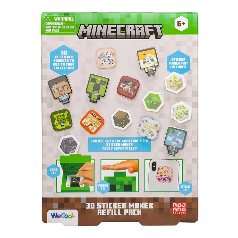 Amplia le tue creazioni con la confezione di ricarica per il Minecraft 3D Sticker Maker. Questo set di ricambio è ideale per bambini e fan di Minecraft che desiderano continuare a realizzare i propri adesivi scintillanti con un marcato effetto 3D.