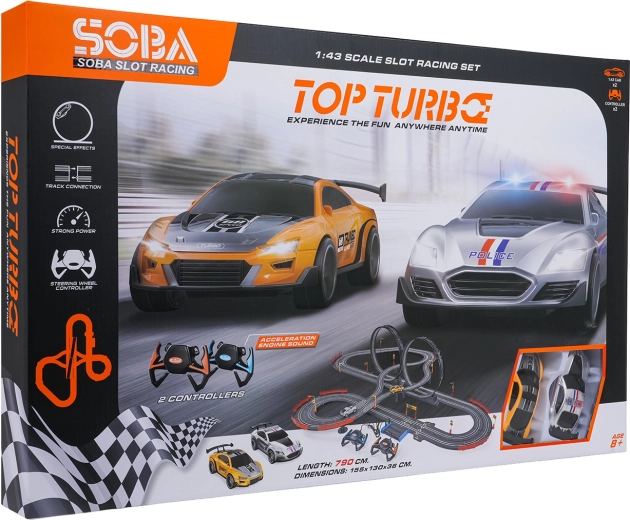 Costruisci il tuo circuito con doppi loop e tratti sopraelevati, dove contano velocità e precisione. La pista TOP TURBO XXL è progettata per bambini dagli 8 anni e appassionati adulti e offre controllo fluido della velocità, luci sulle macchinine e suoni del motore per un’esperienza ancora più realistica.